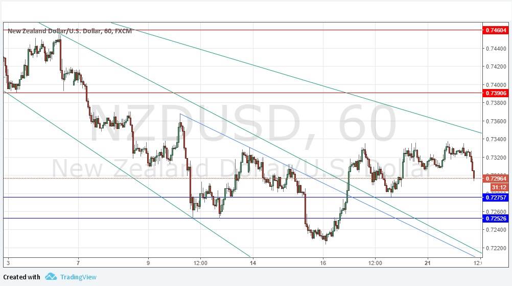 There is a long-term bullish trend, but after failing to get above the 0.7340 area, the price has now fallen sharply back down towards the nearest support level at 0.7275, where it might soon some short-term. It does look as if the price will fall back down to that level, and as we had a meaningful bullish bounce there before, it could well happen again, so that is the key development to watch for here. If it is broken, then the support confluent with 0.7250 could be very interesting as it is such an important psychological level here.