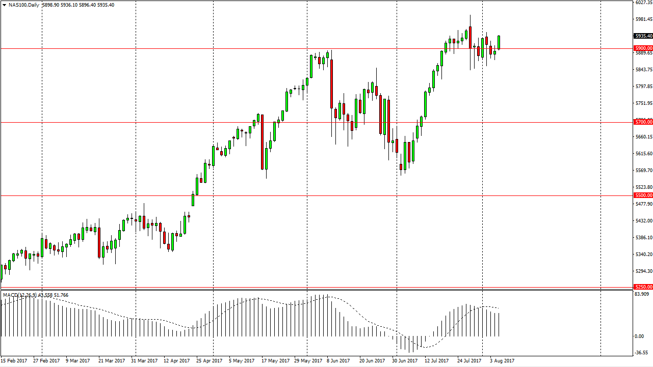 The NASDAQ 100 rallied as well, and more importantly, closed near the highs of the day. This is a market that has been leading the rest of the indices higher in the United States, and it looks set on reaching towards the 6000 handle again. If we can get there, I think that eventually we will break above that level, and continue much higher. Technology companies continue to lead the way, specifically the largest ones, but it seems as if that is the catalyst for indices traders out there to continue to buy in the United States. I believe there is a significant amount of support at the 5850 handle, so as long as we can stay above there, I am a buyer. We could get a bit of a pullback today, but I look at any fall from here the states above the 5850 level as a buying opportunity as it should offer a significant amount of value in what has been one of the strongest markets.
