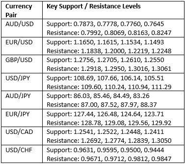 We teach that trades should be entered and exited at or very close to key support and resistance levels. There are certain key support and resistance levels that should be watched on the more popular currency pairs this week, which might result in either reversals or breakouts: