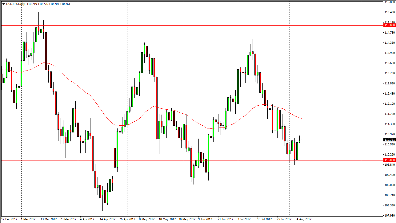 The US dollar did almost nothing against the Japanese yen during the day on Monday, testing the 111 level, but struggled a bit to overcome that barrier. Ultimately though, I think that we are looking at consolidation between the 111 level and the 110 level underneath that. If we do break above the 111 level significantly, then I suspect that the market is to go looking towards the 112.50 handle. I believe that will eventually happen, but right now the market doesn’t look like it’s in a hurry to go anywhere, so we could see a bit of grinding in the meantime. That grinding could be a potential opportunity for those of you who choose to trade short-term charts. A range bound market could be very good for those of you who trade like this, and I believe that the 110 level will offer a bit of a “floor” in the short term.