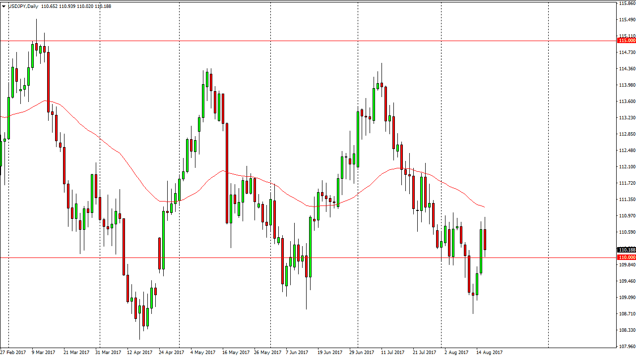 The US dollar initially tried to rally during the day on Wednesday, but turned around at the 111 level as the FOMC meeting minutes came out much more dovish than anticipated. Because of this, we crashed into the 110 level, and now I think that we are starting to see a real inflection point. After all, the default position was that the Federal Reserve was willing to raise interest rates a couple of times between now and the end of the year. The dovish minutes suggests that it may not be as foregone of a conclusion as once thought. Because of this, we will continue to see volatility in this market, and I think we are going to bounce around the 110 handle overall. Ultimately, this is a market that should continue to see extreme amounts of volatility and you would be forgiven for stepping away.
