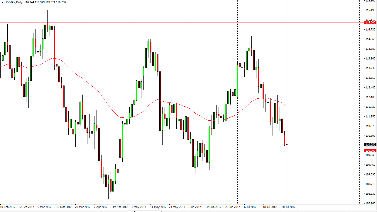 The US dollar went back and forth against the Japanese yen just above the 110 level during the bulk of the trading session on Tuesday, telling me that the buyers are starting to become interested again. I believe that the 110 level continues to look interesting to analyst around the world, and with the ADP numbers coming out today, we could get a bit of volatility in the short term. The markets will be focusing on this harbinger of what we could expect out of the Nonfarm Payroll numbers on Friday, so having said that it’s likely that the volatility could pick up. However, the US dollar is oversold so I think a bounce is probably about to happen. Even if we did breakdown, I believe that there is a significant amount of support at the 109 level as well.