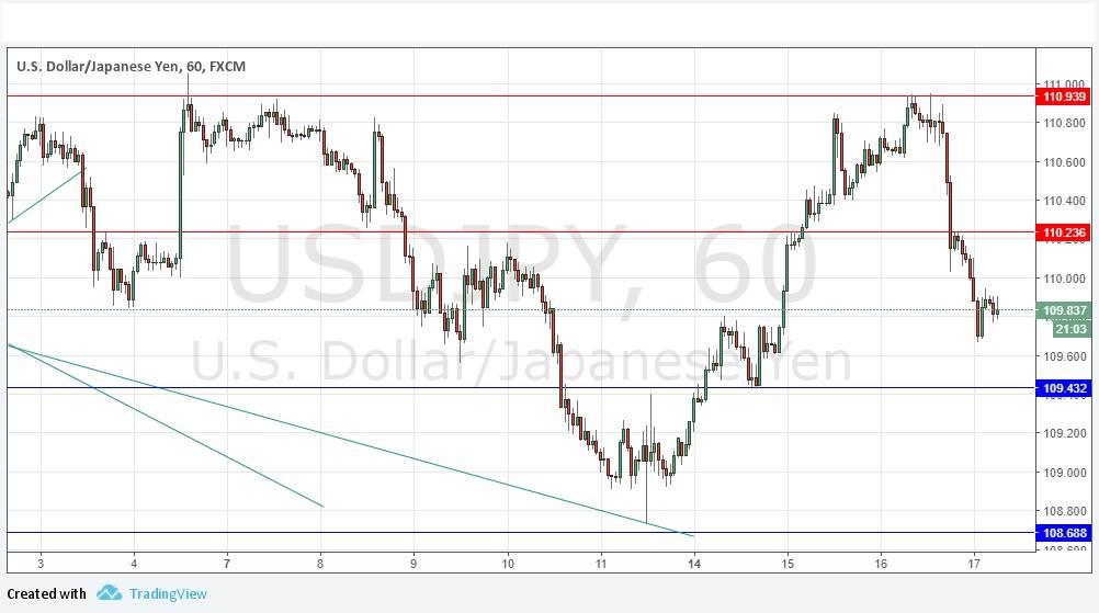 Yesterday’s signals produced a nicely profitable short trade following the bearish pin candle rejecting the resistance level identified at 110.94. It looks as if this position might have further to run.
