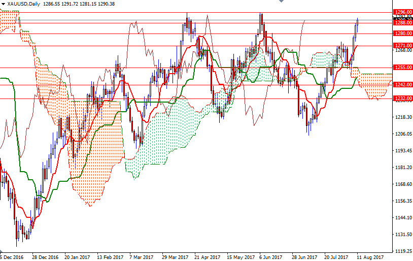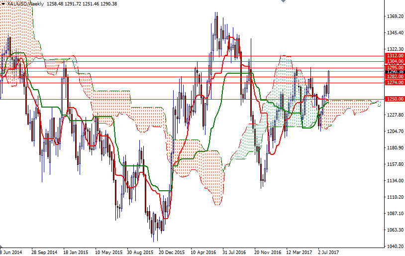 It appears that gold will remain supported amid geopolitical risks as well as fading expectation for the Trump administration’s growth-friendly reforms. The latest data from the Commodity Futures Trading Commission (CFTC) revealed that speculative traders on the Chicago Mercantile Exchange increased their net-long positions in gold to 148837 contracts, from 129672 a week earlier. The medium-term charts are bullish, with the market trading above the weekly and the daily Ichimoku clouds. In addition to that, the Tenkan-sen (nine-period moving average, red line) and the Kijun-sen (twenty six-period moving average, green line) lines are positively aligned and the Chikou-span (closing price plotted 26 periods behind, brown line) is above prices.