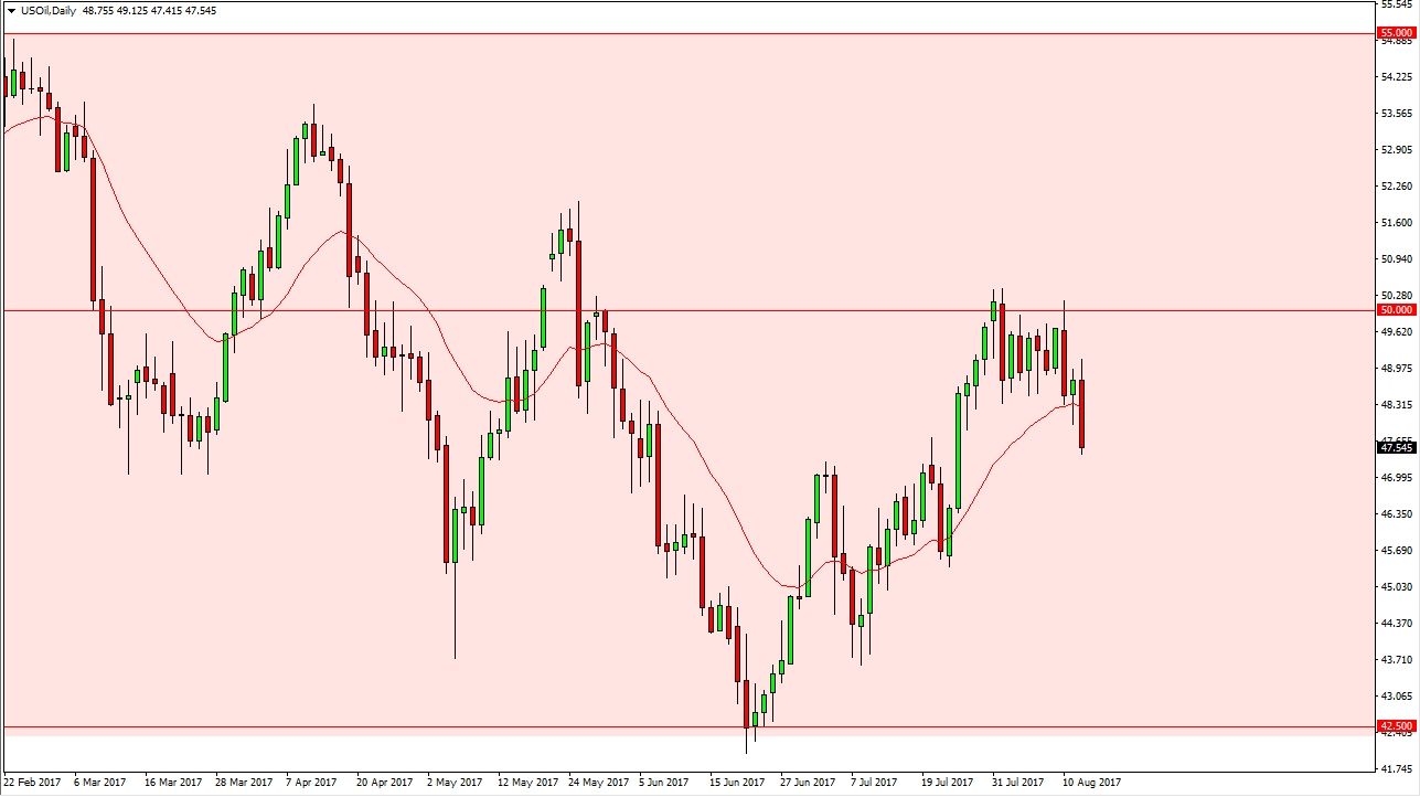 The WTI Crude Oil market initially tried to rally during the session on Monday, but fell rather precipitously, breaking through the bottom of a hammer from the Friday session. That being the case, the market looks as if it is going to go down to the $47 level. A breakdown below there should send this market to the $45.50 level as well. This market seems to be rolling over as we have seen more than once, and I think that the downward channel may be continuing yet again. If we broke above the $50 level, that would of course be a very bullish sign and could turn everything around. Ultimately, I believe that the market should continue to be bearish and therefore I look at short-term rallies that show signs of exhaustion as a nice opportunity to start shorting again.