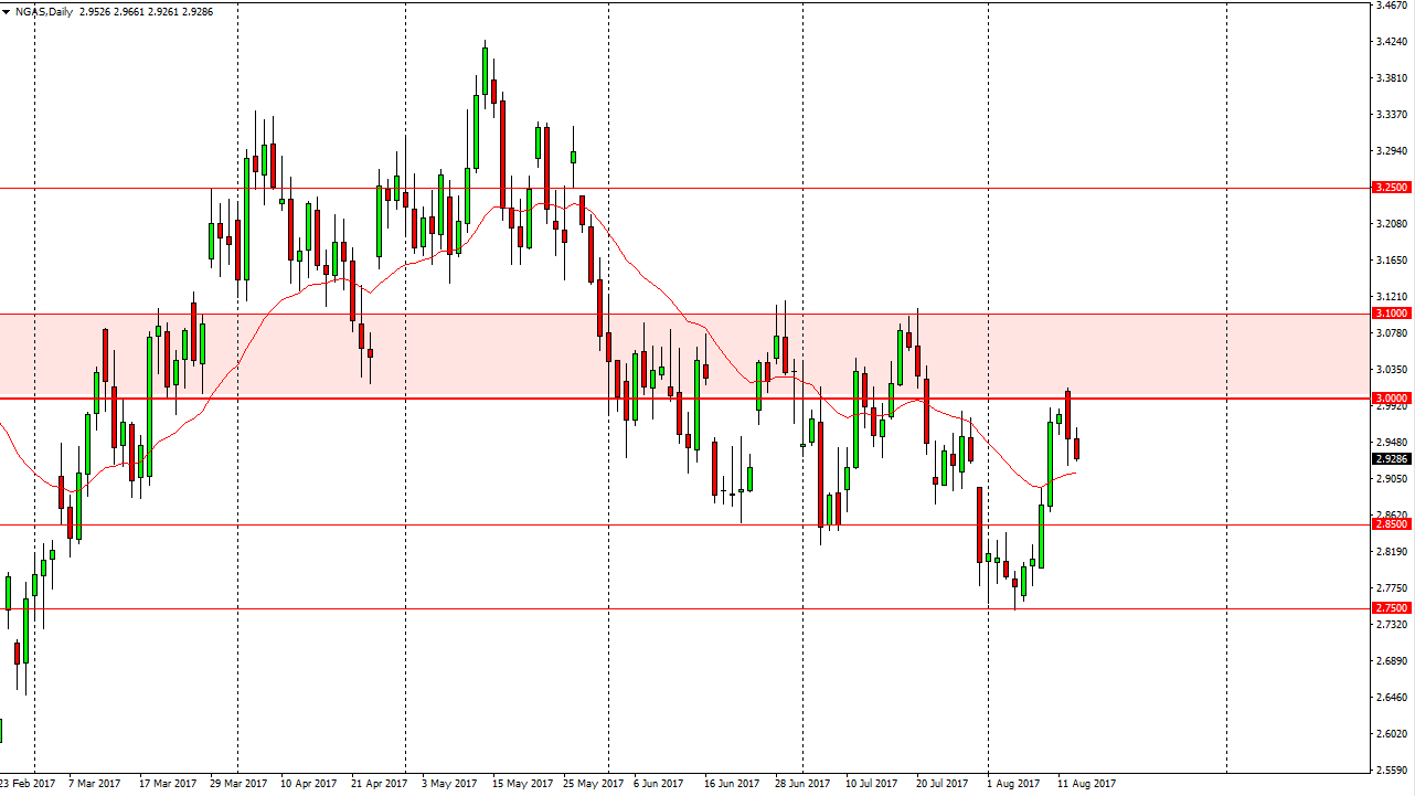 Natural gas markets continue to look very soft, and now the $3 level looks even more formidable than it did in the past. Previously, the $3 handle offered resistance extending to the $3.10 level. This past time we reached towards that level, we didn’t even try to break towards the $3.10 level. Because of this, I think that the bearish pressure is picking up, and I believe that the market should reach towards the $2.85 level underneath. By breaking below there, the market will probably reach towards the $2.75 level. Rallies at this point should be selling opportunities, and I look at exhaustion after a bounce as a nice opportunity to take advantage of what seems to be a longer-term downtrend. I have no interest in buying this market until we clear the $3.10 level above, which is all but impossible in the next session or so. I believe that the market will continue to drift lower, and that sellers will be very attracted to this market.
