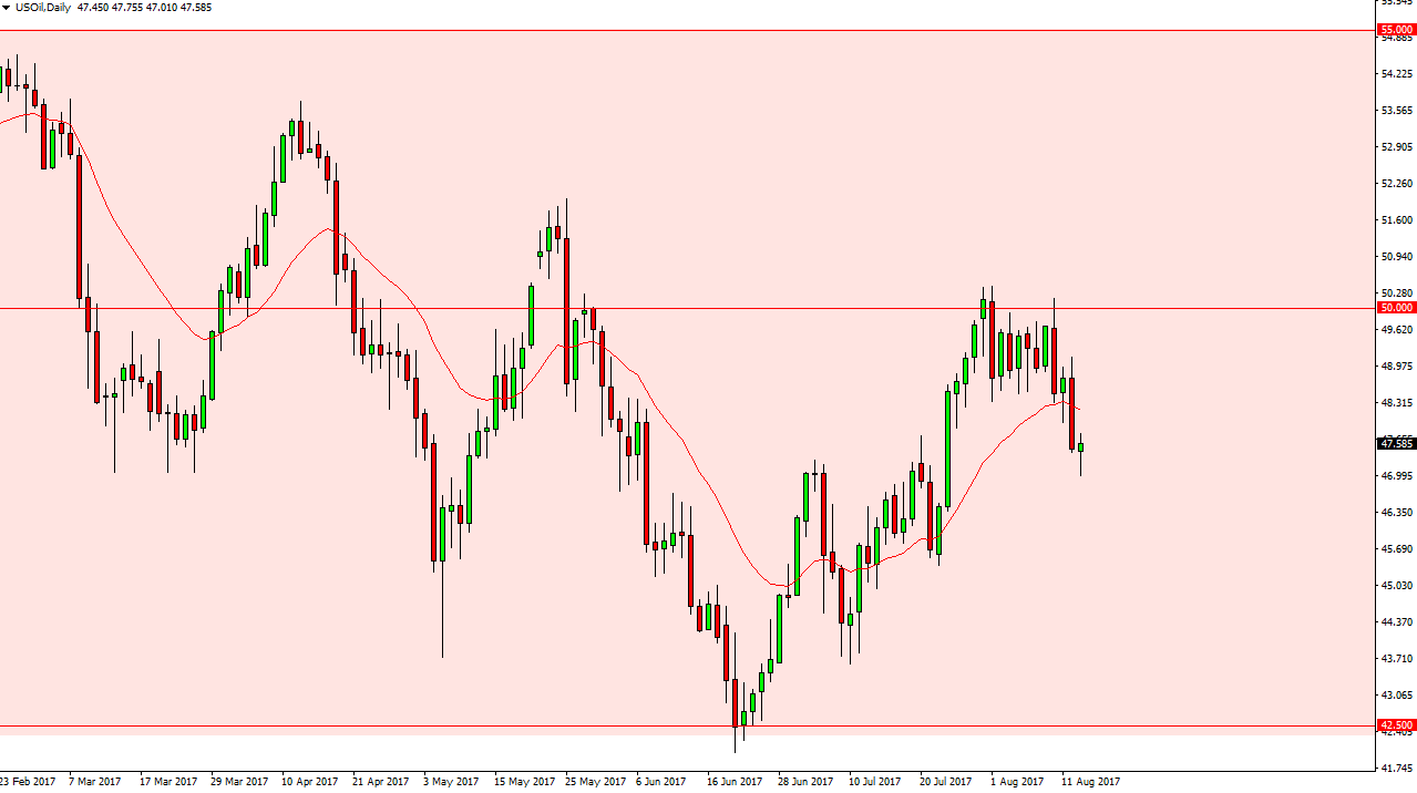 The WTI Crude Oil market initially fell on Tuesday again, but found enough support underneath the $47 level to turn around and form a hammer. This makes a significant candle for the day, but I recognize that the Crude Oil Inventories announcement comes out today, and that could either confirm this hammer is a bullish sign, or negated, which would be a very negative sign. Because of this, I’m waiting until the market breaks one of those ends of the candle and simply following. I will not take this trade until after the announcement though, because it of course can change the overall attitude. Longer-term, I remain bearish but I recognize that a bounce back to the $50 level wouldn’t necessarily be out of the ordinary.