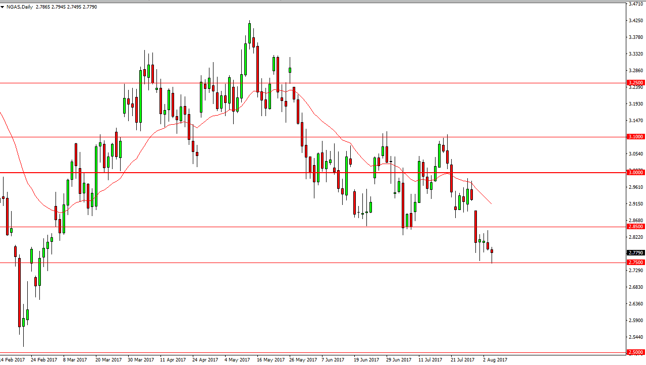 Natural gas markets initially fell during the day on Friday, testing the $2.75 level. This is an area that is very supportive, so a bounce from here would make quite a bit of sense. However, I think that the $2.85 level above will more than likely be resistive. A break above there could then go looking towards the gap near the $2.92 level, which I think will show a significant amount of bearish pressure. Alternately, we could break down below the $2.75 level, and that should send this market as low as the $2.50 level after that. We still have plenty of oversupply in the market, so I have no interest in buying and I believe the natural gas continues to be a “so on the rallies” situation. This is a market that has an absolute ceiling of $3 above, extending to the $3.10 level. I don’t have any interest in buying this market regardless of what happens next.