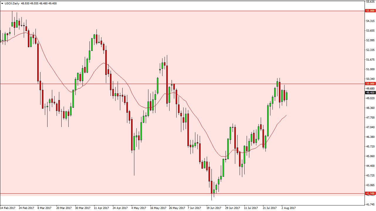 The WTI market initially sold off during the day on Friday, but then turned around to show signs of strength after the stronger than anticipated job announcement coming out of the United States suggesting that perhaps demand will pick up. Because of this, we continue to consolidate between the $48.50 level on the bottom and the $50 level on the top. I believe that the market continues to see choppiness, and it’s likely that if we can break above to a fresh, new high, the market should then reach towards the $52 level above. Ultimately, a breakdown below the $48.50 level since this market looking towards the $47 handle. I think that there is a significant amount of noise in this market, so I prefer the consolidate of play.