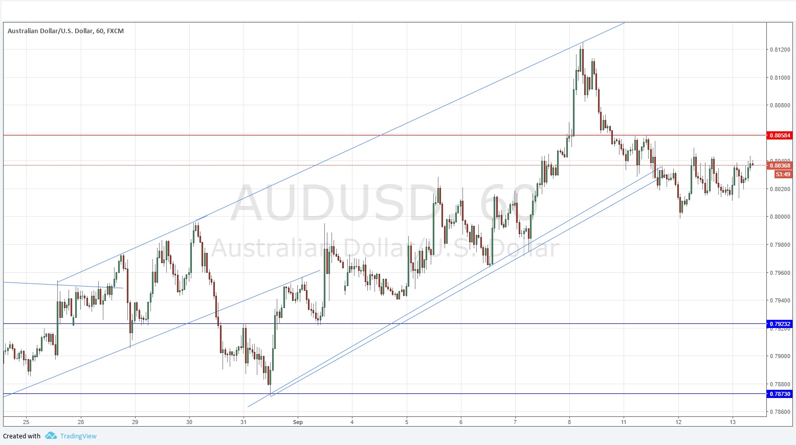 - Go short following some bearish price action on the H1 time frame immediately upon the next touch of 0.8058.