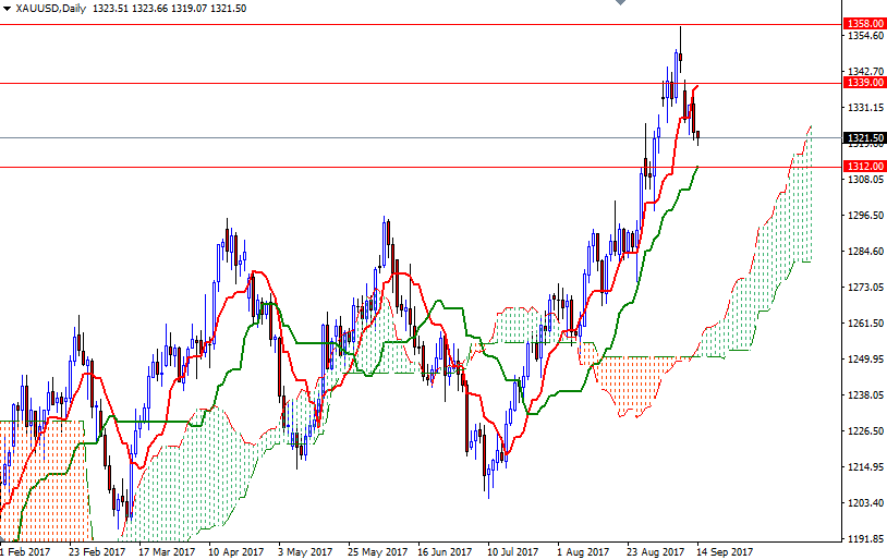 Gold prices dropped $9.12 on Wednesday as the dollar extended its rally. Easing geopolitical concerns dulled desire for safe haven diversification and pushed major U.S. stock indexes to fresh records. XAU/USD initially tried to break out to the upside but the anticipated resistance at around the $1332 level kicked in and capped the market. Consequently, the market fell through $1323-$1321 and tested the support at $1318 in Asia session today.