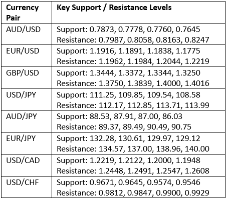 Key Support/Resistance Levels for Popular Pairs