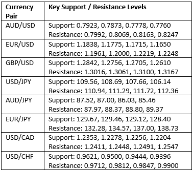 Key Support/Resistance Levels for Popular Pairs