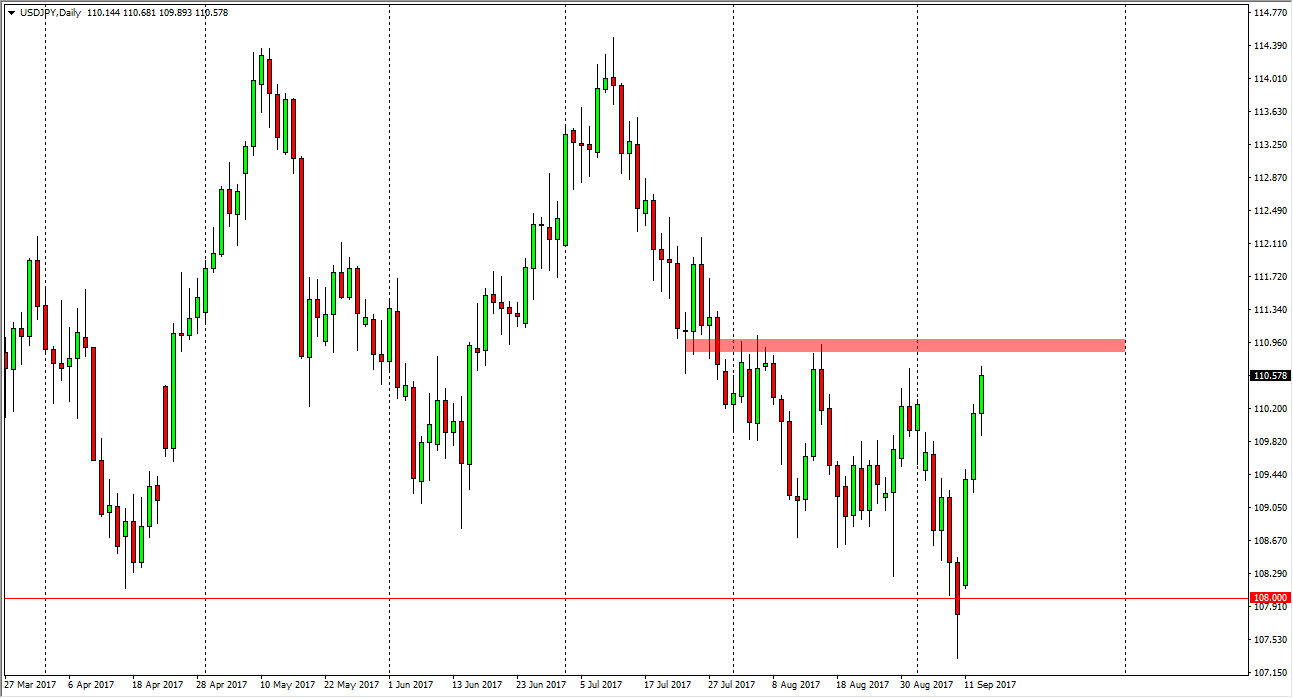 The US dollar rallied yet again against the Japanese yen on Wednesday, as we now look set to test the vital 111 level. If we can break above there, the market should continue to go higher. However, I recognize that we are bit extended at this point, so a pullback could be coming. Longer-term, I think we may rally beyond the 111 level, but the pullback might be necessary to build up the required momentum to do that move. Remember, much of the selloff was due to risk appetite falling after the North Korea situation. I believe given enough time, the markets will go back to focusing on economic fundamentals, and deal less with the political noise. However, keep in mind that it wouldn’t take much to get people scared again.
