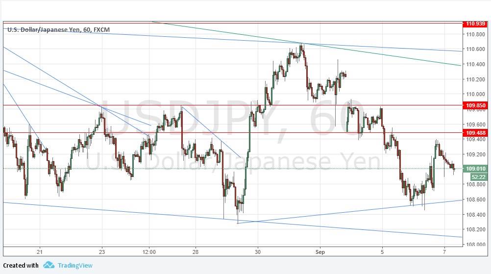 - Short entry following a bearish price action reversal on the H1 time frame immediately upon the next touch of 109.49.