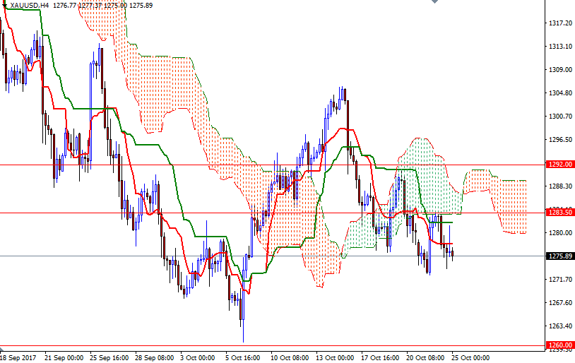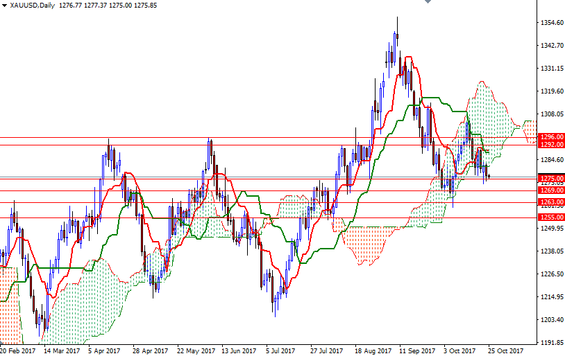 From a chart perspective, the bears still have the short-term technical advantage. XAU/USD is trading below the daily and the 4-hourly Ichimoku clouds. The Tenkan-sen (nine-period moving average, red line) and the Kijun-Sen (twenty six-period moving average, green line) are negatively aligned on both the H4 and the H1 charts.