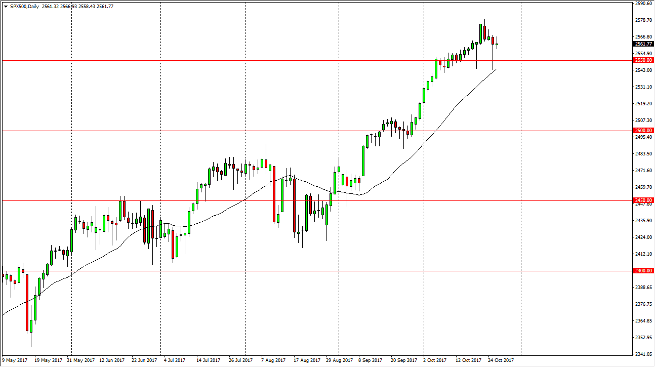 The S&P 500 had a lackluster session on Thursday, as we continue to grind above the 2550 handle. I believe that the market should continue to consolidate in general, as we have gotten ahead of ourselves. We are in the middle of earnings season, so that of course can change things, but also, we have the US dollar strengthening rather rapidly during the day after Mario Draghi suggested that quantitative easing was going to go much longer. Ultimately, this is a market that is in a bullish uptrend, but these pullbacks do occur occasionally. Pullbacks are value as far as I can see, and it’s not until we break down below the 2500 level that I would be concerned about the uptrend. Quite frankly, we’ve gotten ahead of ourselves, so it makes sense that we continue to tread water in this region.