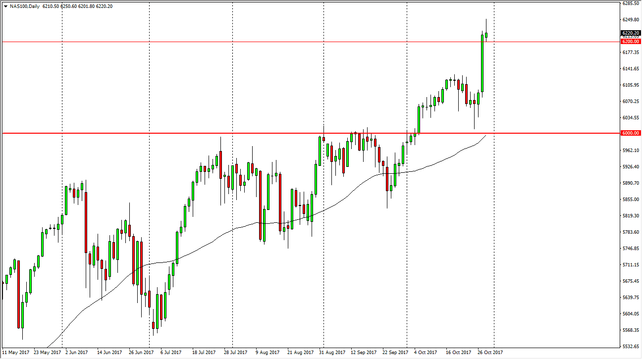The NASDAQ 100 shot higher initially during the day on Monday but turned around to form a shooting star. The shooting star sits at the vinyl 6200 level, and if we can break down below there, the market could very easily fall significantly, perhaps down to the 6100 level. I think that there is a “floor” in the market at the 6000 handle, so having said that it’s likely that the buyers will return eventually. Longer-term, I believe that the NASDAQ 100 does go higher, and if we can break above the shooting star, it’s likely that the impulsive move will continue. However, I prefer a pullback, so I can find value. Ultimately, this is a market that should continue to be bullish over the longer term, and ultimately, I believe that eventually the market will go looking for 6500.