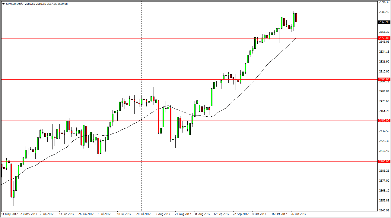 The S&P 500 fell during the trading session on Monday, reaching towards the 2570 handle. The market has a significant amount of support at the 2550 level, and that being the case I think it’s only a matter of time before the buyers return on these pullbacks. Eventually, I think the market will then go to the 2600 level, as it is the next large, round, psychologically significant number. Having said that, it looks likely that we will continue to see algorithmic traders come back in and pick up value on these pullbacks, which has been the case for some time. I believe if we can stay above the 2500 level, the longer-term uptrend should continue to be intact, and therefore I think that the market should continue to find plenty of reasons to go higher, especially if earnings season continues to do well.