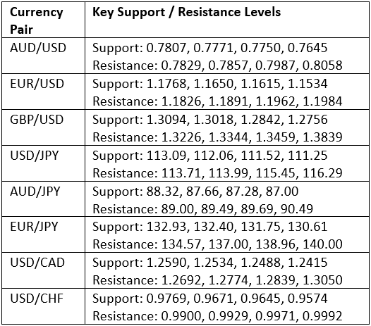 Key Support/Resistance Levels for Popular Pairs