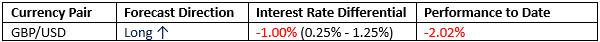 For the month of October, we forecasted that the best trade will be long GBP/USD. So far, the performance has been negative: