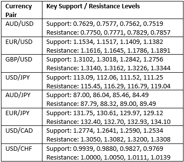Key Support/Resistance Levels for Popular Pairs