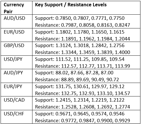 Key Support/Resistance Levels for Popular Pairs