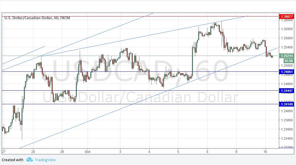 There is finally a small yet possibly meaningful change in the technical picture, with the price breaking below a supportive trend line. There is another supportive trend line a little below that which remains intact, but this is the first hint that the price may be ready for a downwards movement. The support at 1.2486 does look very solid though, so I would not be looking to open any new short trades here yet. For the time being I have a long bias, but this looks as if it could change tomorrow or later this week.