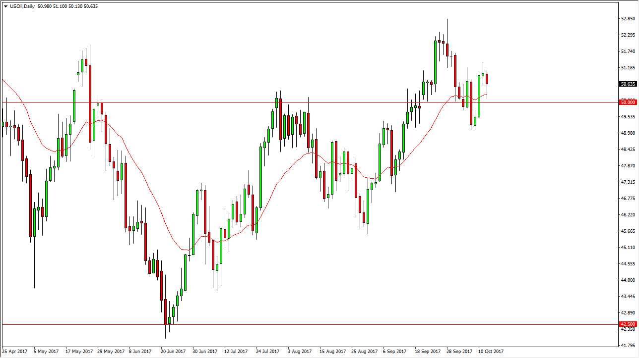 The WTI Crude Oil market fell significantly during the day on Thursday, testing the $50 level for support. We found it, and turned around to form a bit of a hammer. The hammer of course is a bullish sign, so I think we could bounce from here and try to go towards the $52.50 level above. We have plenty of volatility and choppiness in this market, as well as confusion. Because of this, it can be difficult to hang on to this market, as the noisy conditions make this a very tough market to hang onto. However, I think that we have several conflicting issues at the same time, as OPEC and more importantly, Saudi Arabia and Russia have come to the conclusion that they are going to try to cut back on production. On the other hand, it’s likely that oversupply will continue to be a major issue. With this, noise continues to be an issue.