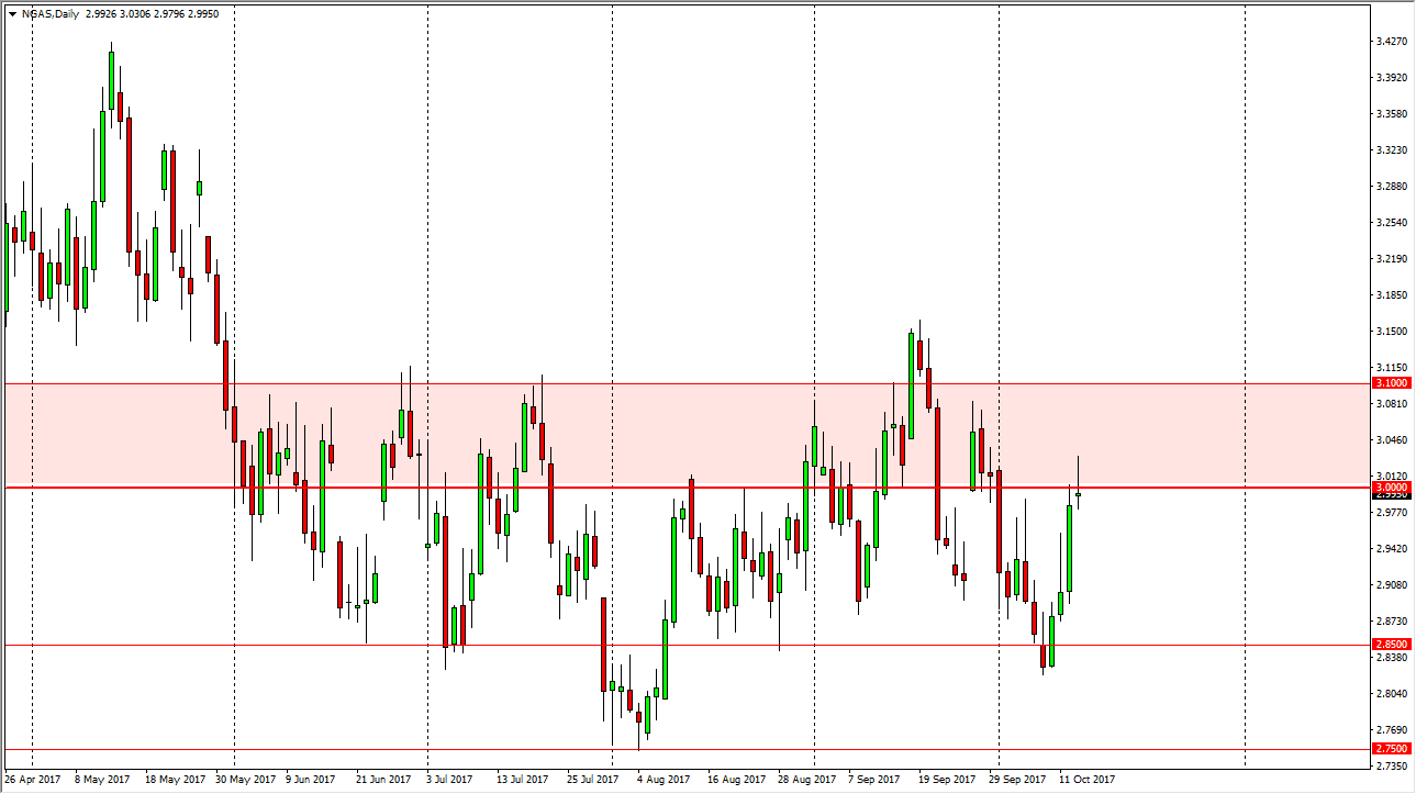 Natural gas on the other hand is quite a bit different. This has been my favorite “whipping boy” for months now, and forming a shooting star at the psychologically important $3.00 level tells me that the market is going to try to roll over again. On a breakdown below the $2.90 level, I suspect that we will go looking towards the $2.85 level. The most obvious place for a stop loss is above the daily trading range, but even if we break above that level, I think that there is plenty of oversupply in the market and of course suppliers willing to dump that oversupply in the market above the $3 level to keep this market rather beaten-down. I don’t care what the temperatures are doing in the United States, the oversupply continues.