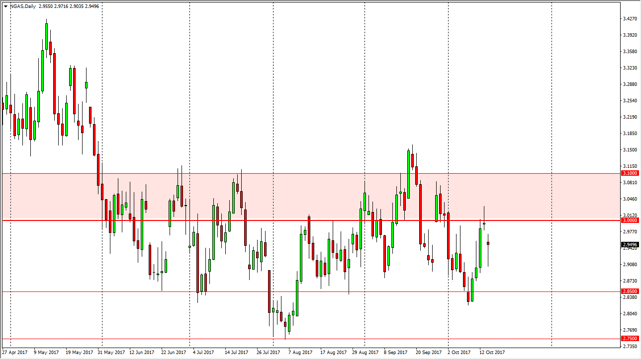 Natural gas markets gapped lower at the open, broke down to the $2.90 level underneath, and then bounced. We ended up forming a massive hammer, and it now looks as if we are going to try to fill that gap. There is a lot of resistance just above, near the $3.00 level. That’s an area where I think that sellers will come back in, and on signs of exhaustion on short-term charts, I am more than willing to start selling again. I think that the market probably goes down to the $2.85 level underneath, and perhaps even lower. I have no interest in buying natural gas, we are far too oversupplied to consider doing that, and I think that the US fracking companies will continue to send massive amounts of supply into the market every time we go near the $3 handle.
