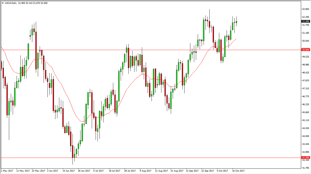 Crude oil markets got a bit of a boost during the session on Wednesday, as the inventory number was a lot more bullish than anticipated. However, we are starting to see a significant barrier at the $52.50 level, so I think what we’re going to be seen over the next couple of days is consolidation, and perhaps an attempt to break out. Pullbacks of this point could be thought of as value, but if we were to drop below the $49 level, that would kill the uptrend, at least for the short term. I believe that the crude oil markets will continue to be almost impossible to hang onto for any significant amount of time, because it’s moving on speculation of headlines more than anything else anymore. OPEC has been neutered, but at the same time the Russians have started to jump into the fray for the possibility of cutting production. However, on the other side of the coin when prices rise, Americans let the market will supply. Because of this, volatility is going to remain extraordinarily high in this market and therefore unless you have the ability to trade short-term back and forth type of situations, you are best on the sidelines.