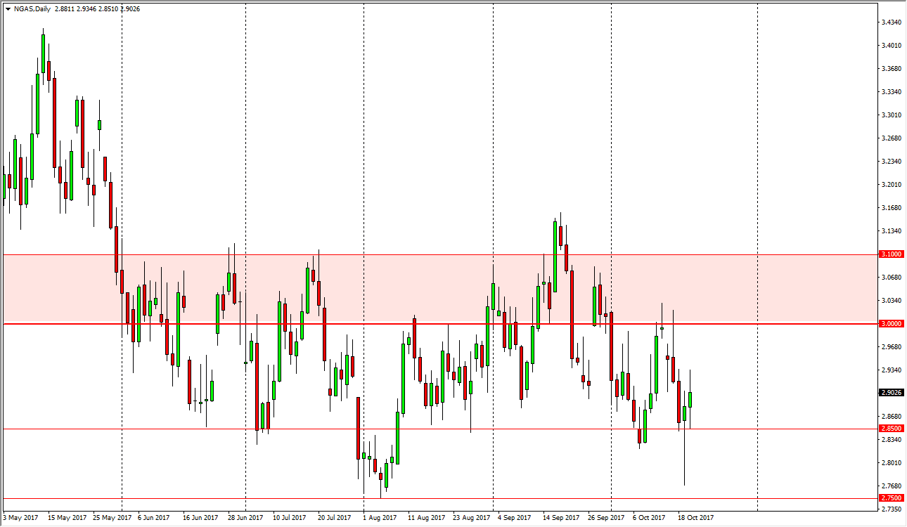 Natural gas markets went back and forth during the day on Friday, testing the $2.85 level, but then bounced enough to form a positive candle. We continue to see a lot of volatility, and the natural gas markets of course are notorious for being noisy. I think that at this point in time, selling rallies continues to be the best way to take advantage of what has been extraordinarily bearish pressure on the market above. I recognize that US fracking companies continue to dump supply on the market at the $3 level, so I’m looking for this short-term rally to offer yet another selling opportunity. I think that the $2.85 level will continue to be supportive, so I think short-term selling opportunities will present themselves time and time again. I have no interest in buying natural gas, because quite frankly there is so much in the way of negativity.