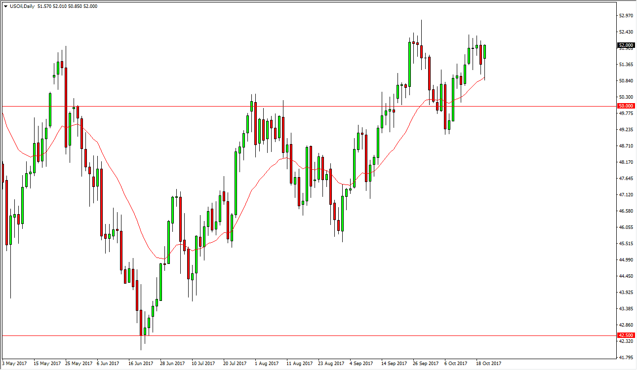 The WTI Crude Oil market initially fell during the Friday trading session, but found enough support underneath that the $50.80 region to turn around and form a nice-looking hammer. It now looks as if we are going to try and reach towards the $52.50 level again, an area that has been resistive. Because of this, it’s likely that we will continue to see volatility but if we can break above that level on a daily close I feel that the market is ready to go towards the $55 level above. The $50 level underneath should continue to be supportive, so I think that short-term pullbacks could be buying opportunities in a market that although not ready to break out quite yet, certainly doesn’t look ready to break down.