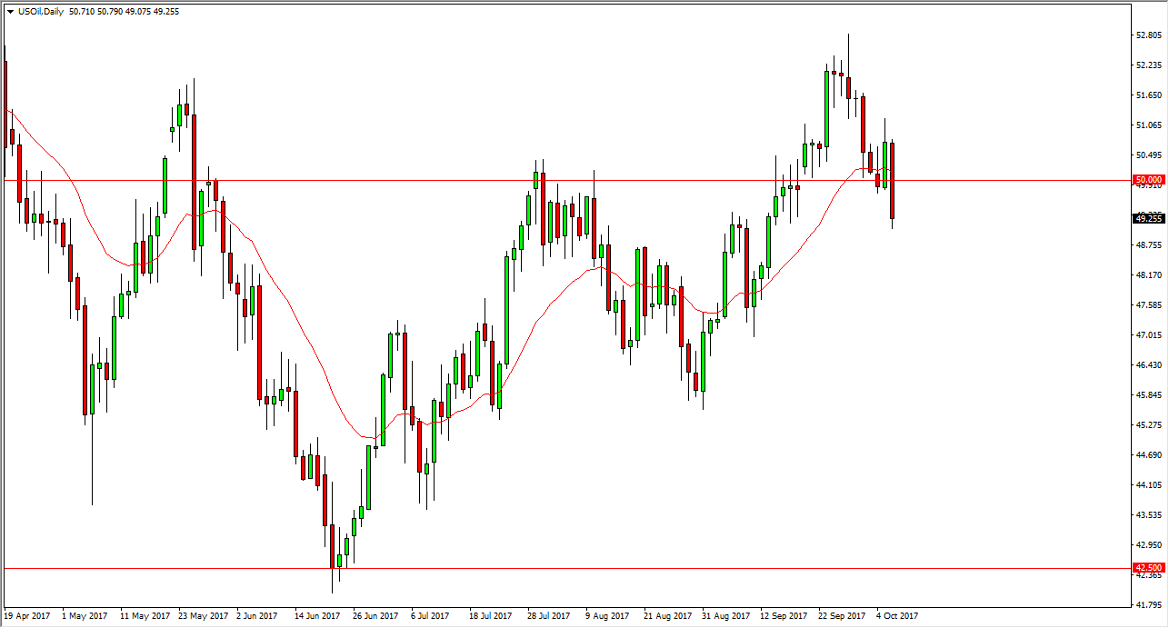 The WTI Crude Oil market broke down significantly on Friday, slicing through the $50 level. This is a very bearish turn of events, but I also recognize that the support level that starts at the $50 level probably extends down to the $49 handle, and therefore I think a breakdown below that level is probably needed to start shorting with any type of confidence. That being said, I certainly would be a buyer at this point. I would need to see the market break above the $51 level to feel comfortable doing so, especially because of the massive amounts of volatility that we have seen lately. If we break down below the $49 level, the market should then go looking for the $46 level under that. Alternately, if we break above the $51 level, the market should then go looking towards the $52.50 level as well.