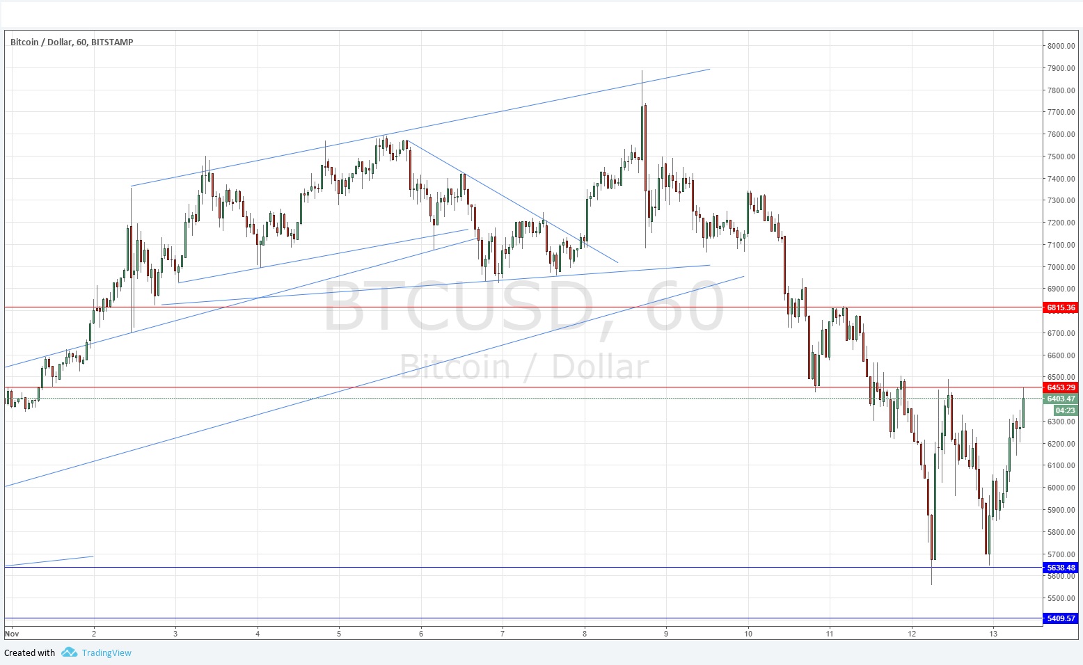 Over the weekend we saw a lot of panic from many analysts that the “Bitcoin bubble” was finally bursting. I blogged yesterday about how the panic was a false panic, and I seem to have been proved right – the sell-off was triggered by the Bitcoin / Bitcoin Cash “civil war”, and the movement now seems to have stabilized. There is high volatility, but that is no reason why the price will not begin a period of consolidation now, which I think is the most likely outcome. The short-term outlook is perhaps slightly bullish, much will depend upon whether the resistance level at $6453.29 or $6815.36 hold. The bullish channel has broken, but the support level above $5600 has held very firmly, which is comforting for bulls and long-term investors. I think anyone who bought at the lows near $5700 received a good deal.