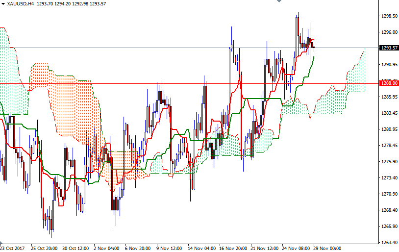The market is trading above the Ichimoku cloud on the H4 and the H1 time frames, suggesting that the bulls still have the short-term technical advantage. However, as I pointed out yesterday, XAU/USD has to anchor somewhere above the 1296.80-1296 area to make a run for 1302/0. The bulls have capture this strategic camp so if they intend to make an assault on 1304.50.