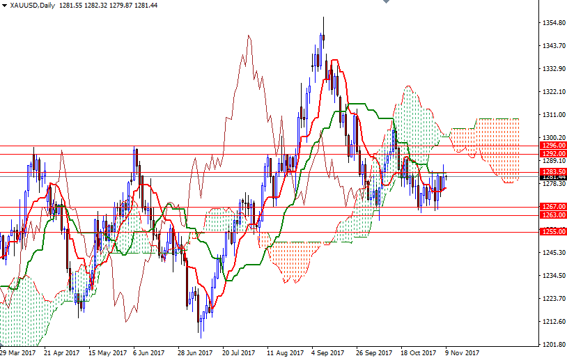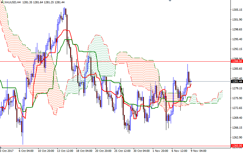 Gold prices rose $6.13 an ounce on Wednesday, hitting the highest level in three weeks, as concerns over U.S. tax reforms weighed on the dollar. XAU/USD extended its gains after the market saw an upside breakout from a sideways trading range, but it found heavy resistance just below the $1288 level. XAU/USD is currently trading at $1281.44, lower than the opening price of $1281.55.