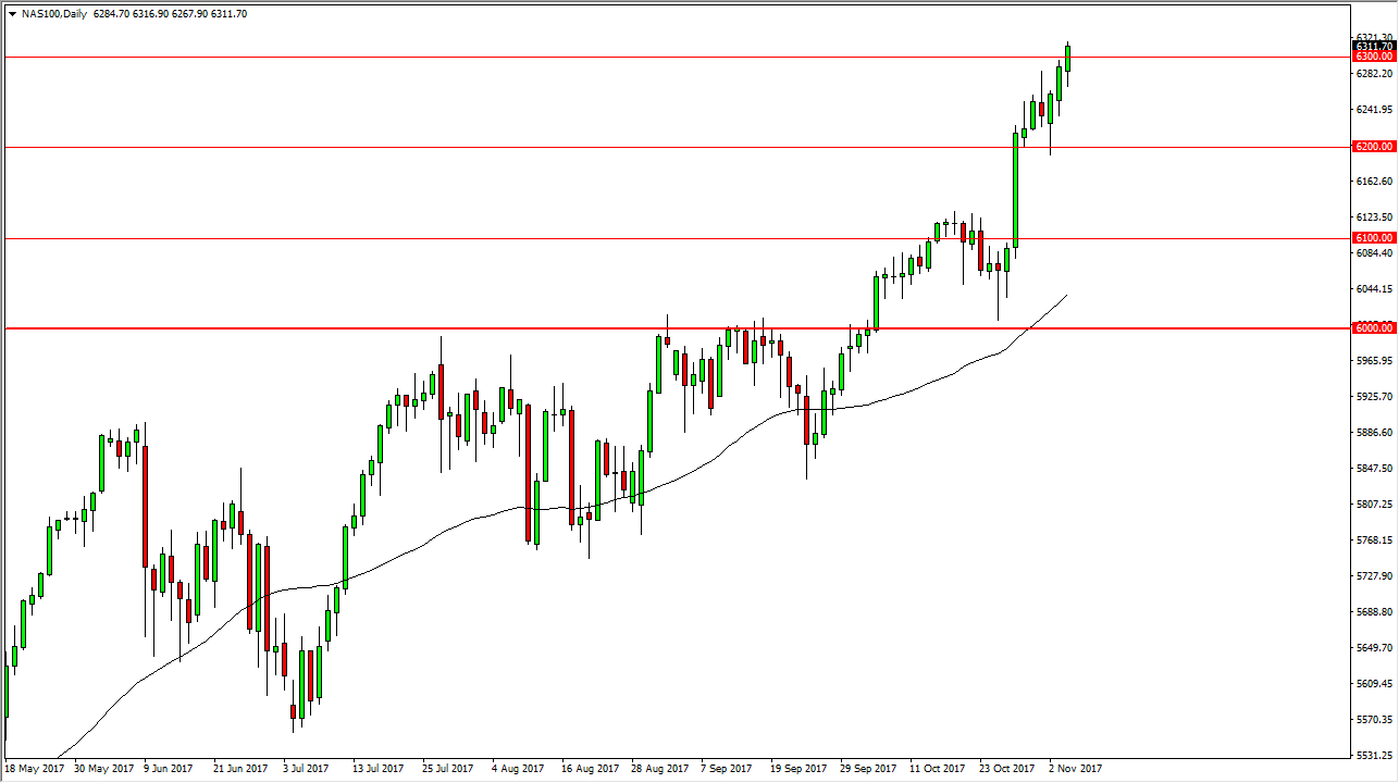 The NASDAQ 100 initially fell and then turned around to sliced through the 6300 level. This market has gotten ahead of itself, and I think that the market will eventually have to pull back. I believe that the 6200 level should be the floor in the market, and even if we do go higher today, I will be sitting this one out, as I believe that the momentum has gotten far ahead of itself. The momentum is cutting, because it works in both directions and you can see that we are clearly light years away from the 50-day exponential moving average, something that I believe acts as a “mean” for the market in general. I believe the absolute floor in the uptrend can be found at the 6000 handle.