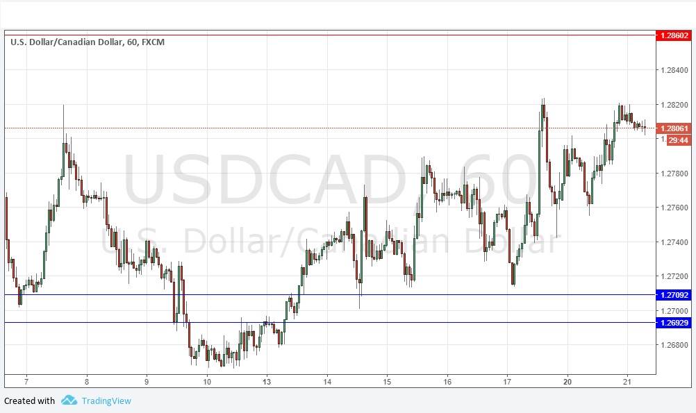 There is still no clear trend in this pair, and overall there are probably going to be better opportunities in other currency pairs. The short-term trend can still be said to be a little bullish, with the price gradually rising from a supportive zone centred on 1.2700. It now looks as if the best possible trade which might set up here today would be a short trade from a spike up to 1.2860. The level at 1.2820 is acting as minor resistance, the price has kept rejecting that level, forming a triple top. I have no directional bias. If you are determined to trade this pair today, it is probably going to be best to follow the waves with a bullish bias below 1.2820, if the price never reached 1.2860.USDCAD