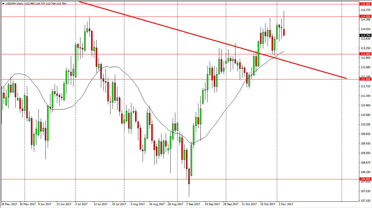 The US dollar initially rallied on Monday, breaking above the vital 114.50 level. There is a significant amount of resistance above there and towards the 115 handle, so at this point I suspect that we are going to roll over, especially considering that we had formed a massive shooting star. The 113-level underneath should continue to be supportive, just as the previous downtrend line had been. I think that some type a pullback from here should only end up offering a buying opportunity based upon value at lower levels. If we were to break below the 112 level, I could be convinced to start selling, at least for the short term. Overall, I anticipate that the buyers are going to jump back into this market eventually, and once we break above the 115 handle, we should then go to the 118 level.
