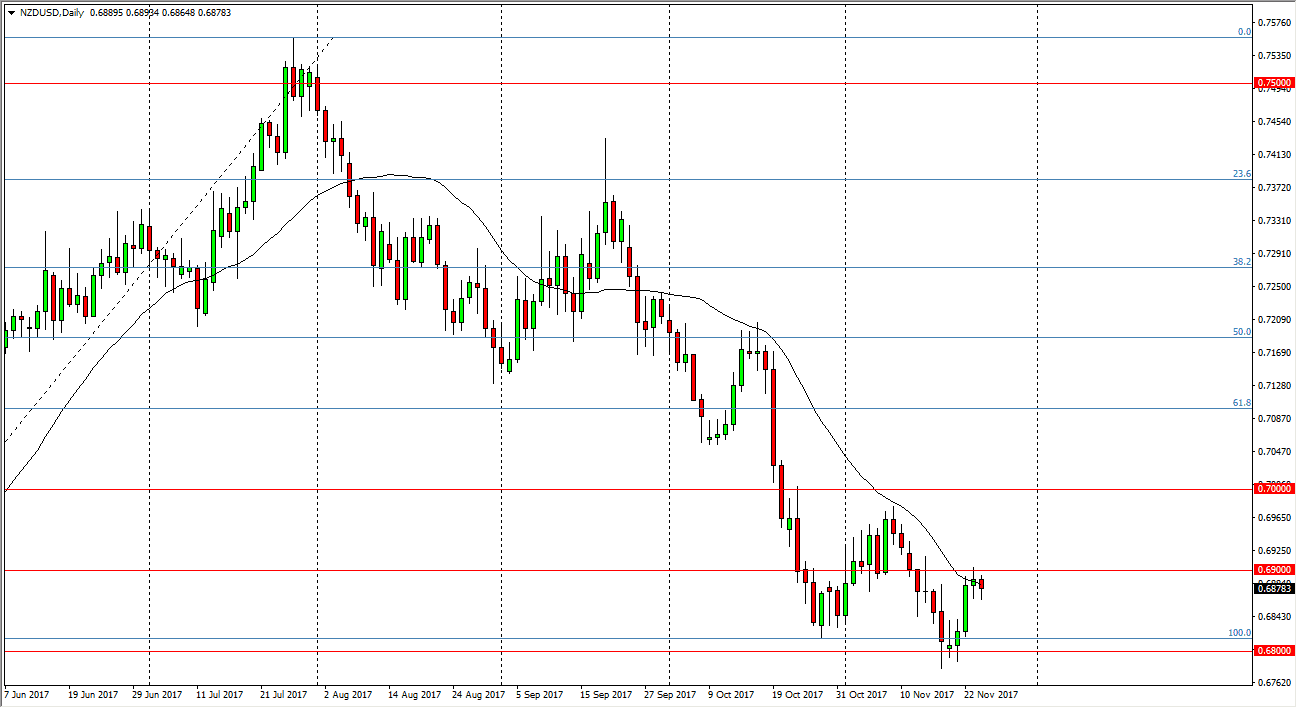 The New Zealand dollar traders had a busy day, as we went back and forth but ended up forming a bit of a hammer. The hammer sits just below the 0.69 level, which is an area that we have seen both support and resistance. If we break above that level, then we will have an even more significant fight above, as the 0.70 level is even more resistant. If we break down below the bottom of the hammer for the day, that should send this market looking to the 0.68 level, which has been massively supportive. A breakdown below there frees the New Zealand dollar to go down to the 0.65 handle given enough time, and perhaps even down to the 0.6350 level based upon the 161.5% Fibonacci retracement level. Remember, this pair tends to be very sensitive to risk appetite.