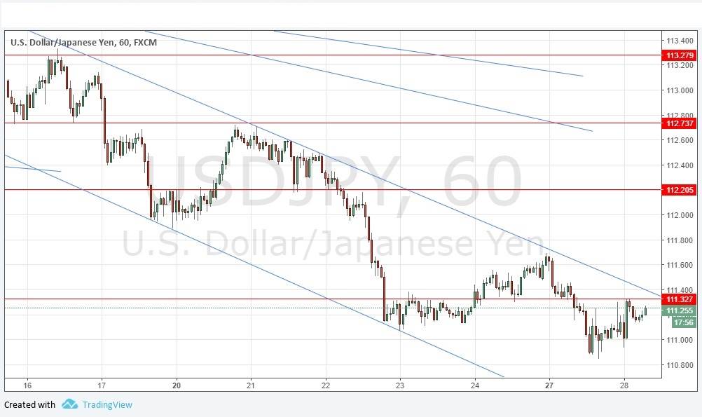 Short entry following a bearish price action reversal on the H1 time frame immediately upon the next touch of 111.33 or 112.21.