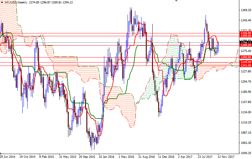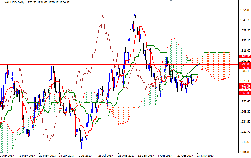 The market is above the Ichimoku clouds on the weekly and the 4-hourly charts. In addition to that, the Tenkan-sen (nine-period moving average, red line) and the Kijun-sen (twenty six-period moving average, green line) are positively aligned. As I said a week ago, the bulls have the slight overall near-term technical advantage. Ultimately, the market saw an upside breakout from a sideways trading range on Friday and reached the 1296/2 area, where the bottom of the daily cloud resided.