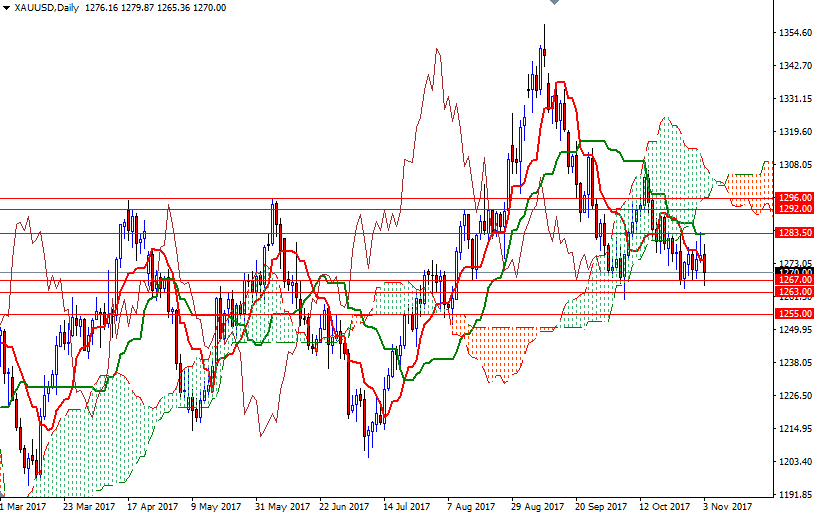 If the bears increase pressure and drag prices below the 1263/0 area, then the market will probably visit 1255 and 1249/7. A break below 1247 could send prices down to the 1241/39 zone. The bottom of the weekly cloud sits at 1232. To the upside, the bulls will have to overcome nearby barriers such as 1275/4 and 1279 so they can make a move to challenge the critical 1283.50 level, a confluence of a horizontal resistance and the daily Kijun-Sen (twenty six-period moving average, green line). A daily close above this barrier could provide the bulls the extra fuel they need to tackle 1292. Beyond there, the bears will be waiting in the 1297/6 zone.
