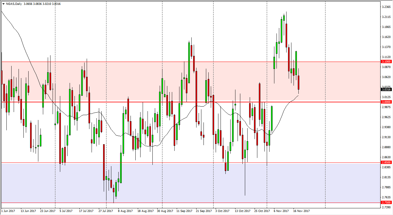 Natural gas started the week very negatively, initially trying to rally but then broke down rather significantly. I think we are going to go ahead and look for support at the $3.00 level, so I’m waiting to see if we can get some type of bounce from that area that I can start taking advantage of what has typically been a very strong time of the year, and of course the gap that formed recently above the $3 level was a very strong sign as well. However, if we were going to break down below the $2.98 level, the market will probably go looking towards the $2.85 level. Meanwhile though, I believe that we are much likelier to see the $3.20 level again.