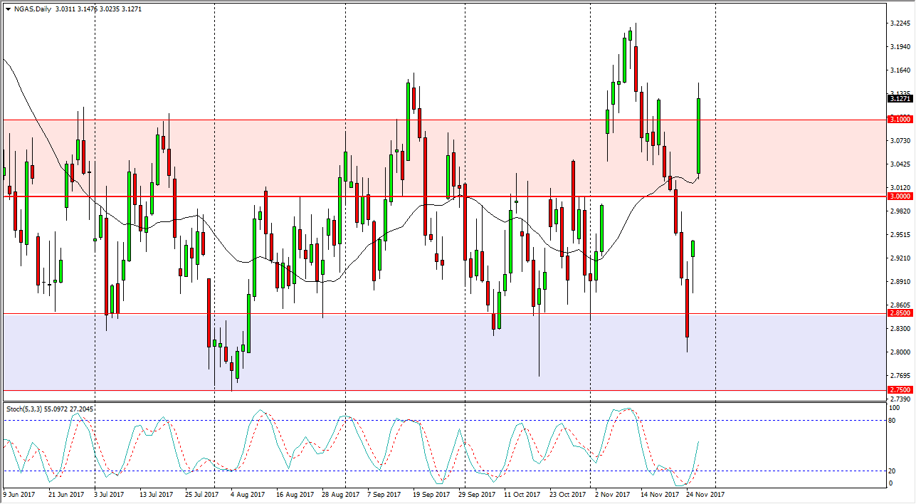 Natural gas markets continue to be extraordinarily volatile, and the lack of volume has plagued available lately. We gapped higher at the open on Tuesday, as it looks like were tempted may be coming to the United States. However, these rallies are very short-lived most of the time, and I suspect that we will get an exhaustive candle to start selling. We have already gone too far after the gap to jump in now, as it would be “chasing the trade.” I can think of nothing that does more to record traders account than to chase the trade. If we get an exhaustive candle, I suspect that the market will probably roll over and try to fill the gap, meaning that we would go much lower. At this point, I’m sitting on the sidelines and waiting for clarity.