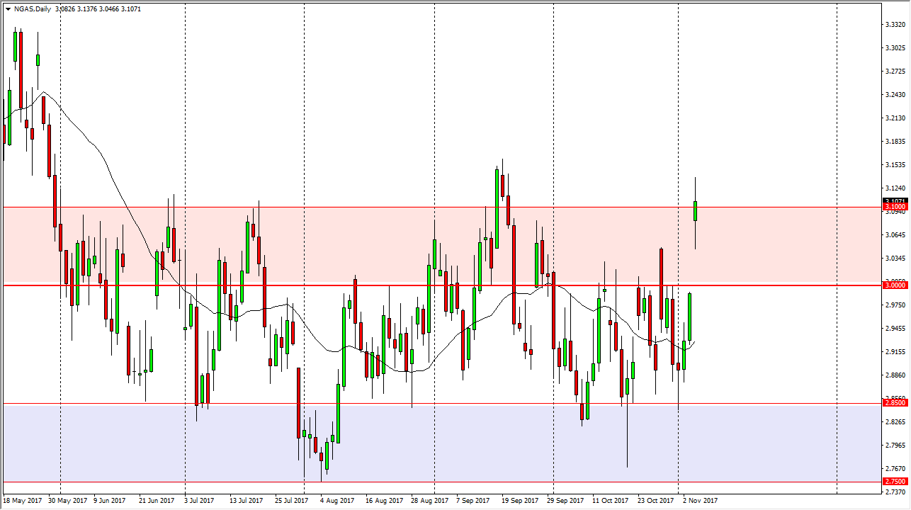 Natural gas markets have yet again had a very volatile session, gapping drastically higher at the open on Monday. We even reached as high as $3.14, but then pulled back to close just above the $3.10 level. This market as a quite a bit of space underneath to fill the gap, so we could see selling come back in as we are at the extreme of the overall consolidation that we have seen. However, the weekly chart has formed 3 hammers in a row, so I suspect we may be getting ready to see the seasonal break out to the upside that we get due to more demand coming out of the United States. However, this is a short-term opportunity at best, and I think that the $3.30 level will be as far as this market can go. Frankly, the market should continue to be one that remains volatile, because supply will almost certainly come flooding into the market at these elevated levels.