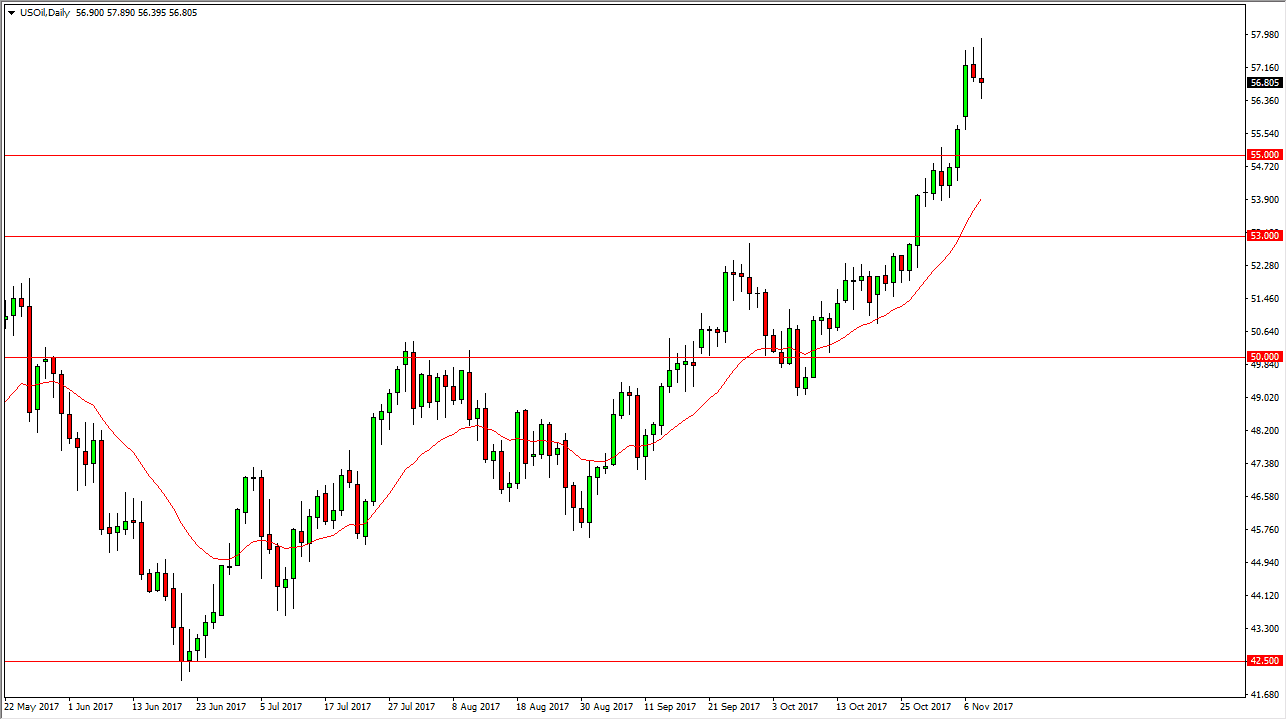 The WTI Crude Oil market initially rally during the trading session on Wednesday, breaking towards the $58 level. We turned around to form a shooting star though, so I think that perhaps the overextended WTI market will start to roll over, perhaps reaching towards the $55 level underneath. There is a significant amount of support just underneath the $55 level, so I think that this is more or less a buying opportunity just waiting to happen. Some type of support near the $55 level should be thought of as value, as the market should continue to go to the $60 level. However, if we were to break down below the $53 level, the market could breakdown to the $50 handle. We are overbought, so this pullback is welcomed by both the bearish and bullish alike.