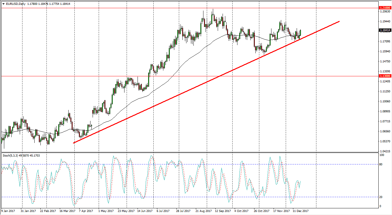 The EUR/USD pair pulled back over the last several sessions, but during the day on Wednesday, we have seen bullish attitudes slip back into the market. The uptrend line of course has held, and therefore I think it’s only a matter of time before we go higher. Because of this, the market will probably go looking towards the 1.20 level above, perhaps to the 1.21 level above. A break above that sends this market much higher, so I think that we may have to pull back several times to build the necessary momentum to break out, but I do expect that to happen longer term. After today’s actions, I think that the buyers are starting to become a little bit more aggressive, but we should also keep in mind that this is a very illiquid time a year, so it’s possible that moves could be exaggerated.